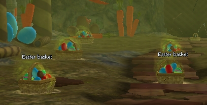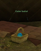 3. Destruye los metines Easter basket para obtener un Blue easter egg. Ve hacia la canasta grande que está cerca de la puerta y arrastra el huevo hacia ella para colocarlo dentro.